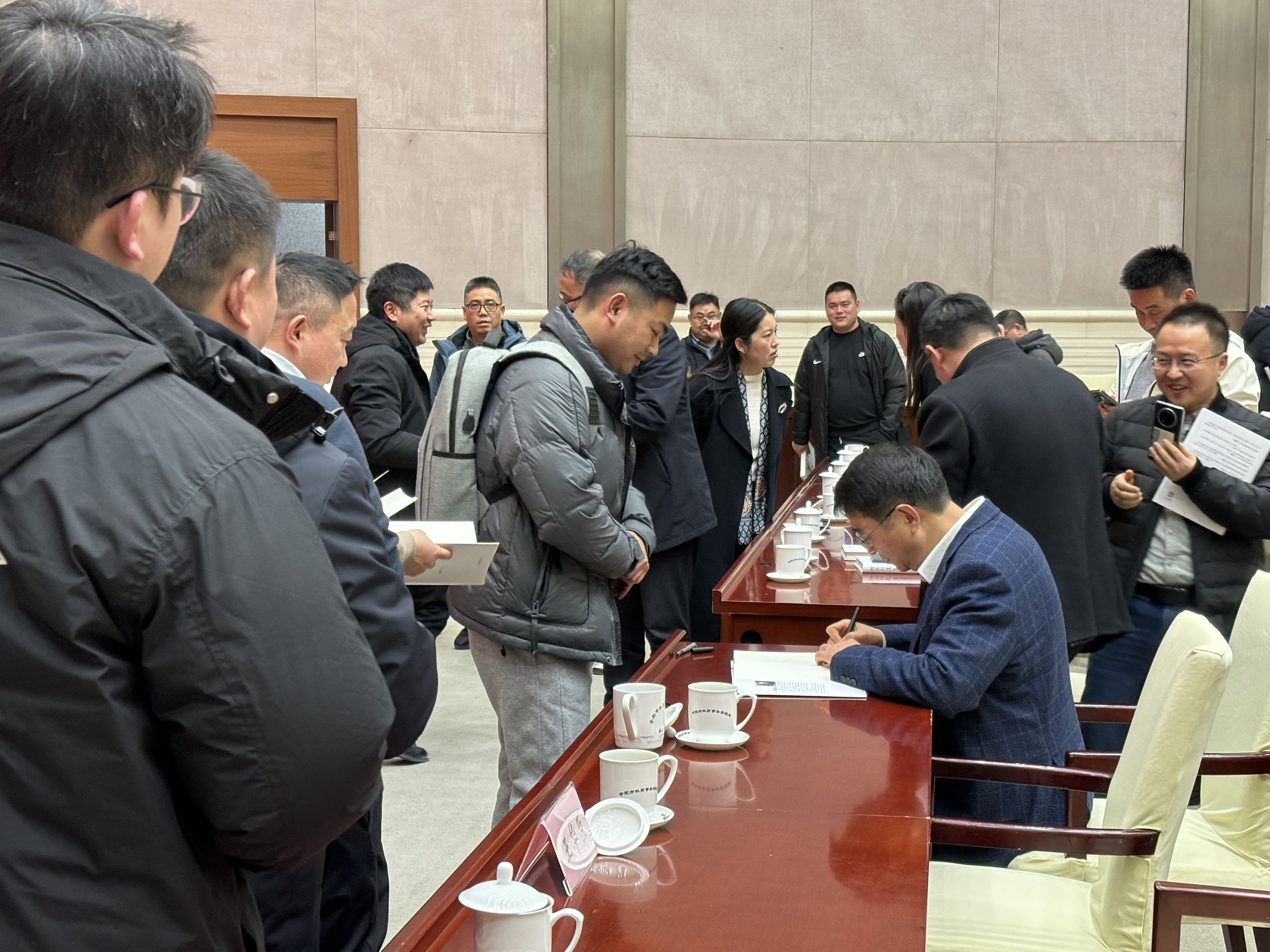 活动接近尾声时,现场的青年企业家排起长队,纷纷邀请姚和平董事长在其著作《胜在有道——民营企业的管理思考与行动》上签名,并合影留念。