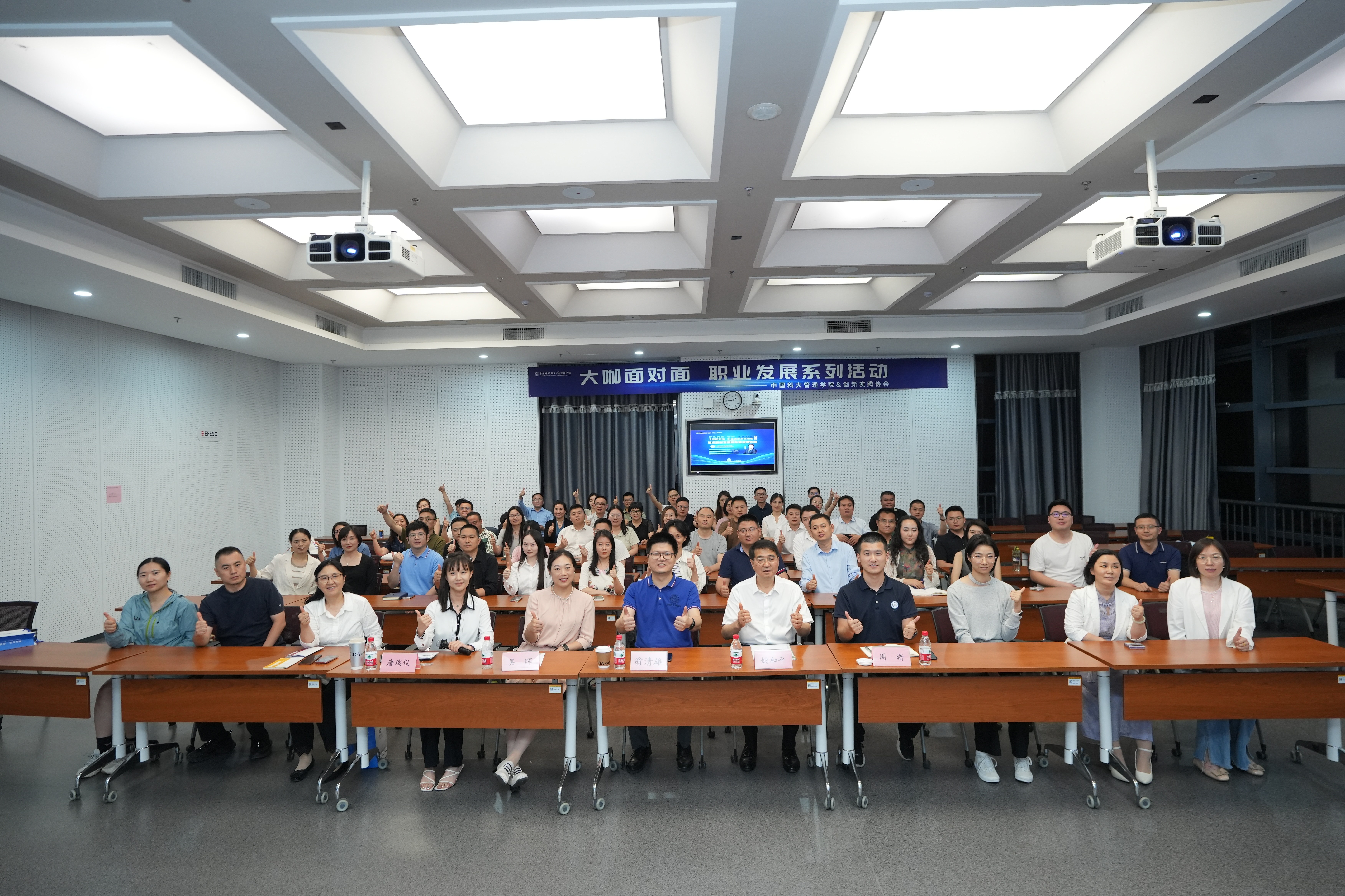 此次活动为中国科学技术大学管理学院主办的第七期“大咖面对面-职业发展系列活动”。中国科大管理学院教授、博士生导师、国际金融研究院副院长翁清雄,管理学院专业学位中心职业发展与就业主管吴晖、管理学院创新实践协会执行主席周曙,以及EMBA学员、企业家等齐聚一堂,共同探寻企业成长发展背后的经营管理密码。
