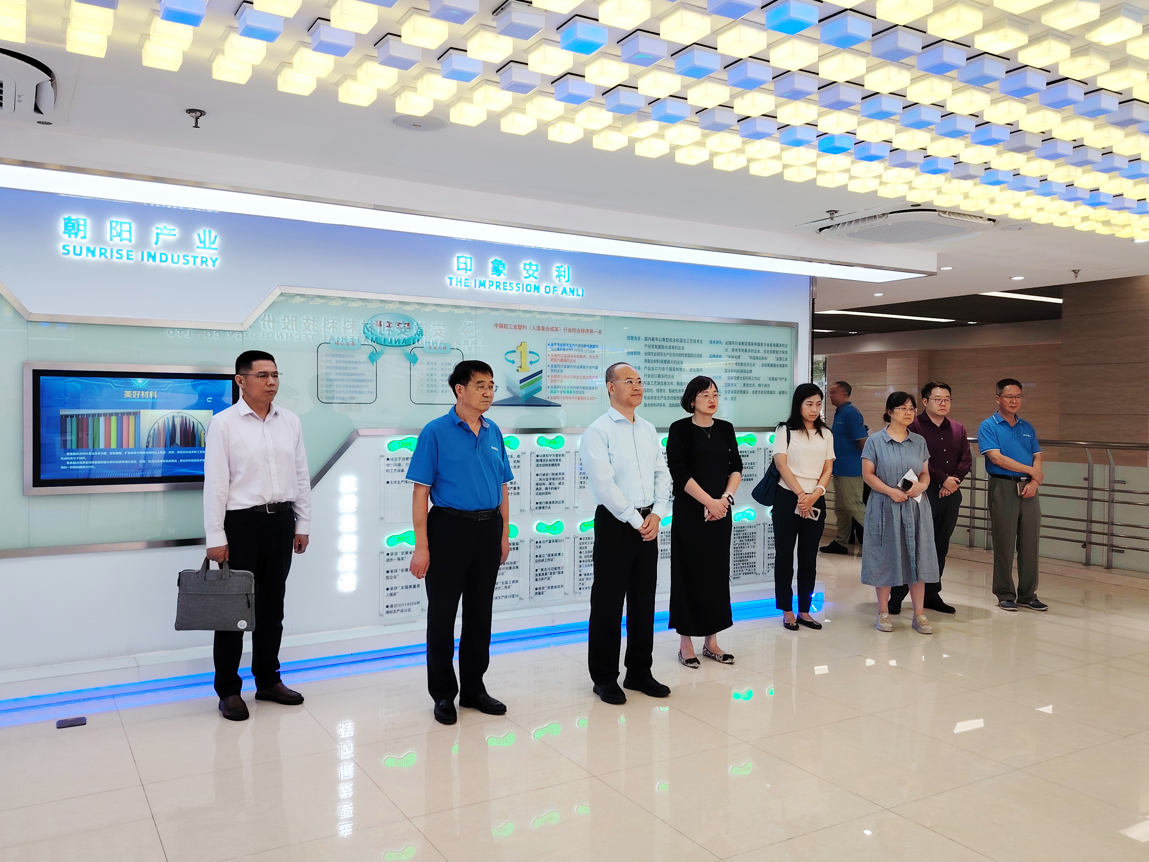 王志华司长一行通过参观展厅、观看宣传片,了解安利股份发展历程、技术创新、产品应用及外贸情况。一行人对色彩多样、手感舒适的安利材料展现出浓厚的兴趣,纷纷触摸感受、仔细端详材料细节。王司长称赞道“安利材料功能强大,不仅将创新性与实用性融合,还有着广泛的应用范围、市场潜力巨大,颠覆了大家对聚氨酯复合材料的传统认知。”大家纷纷表示,这种高性能、多功能的材料,着实大开眼界、大感惊喜,让人忍不住想向更多人“安利一下”。