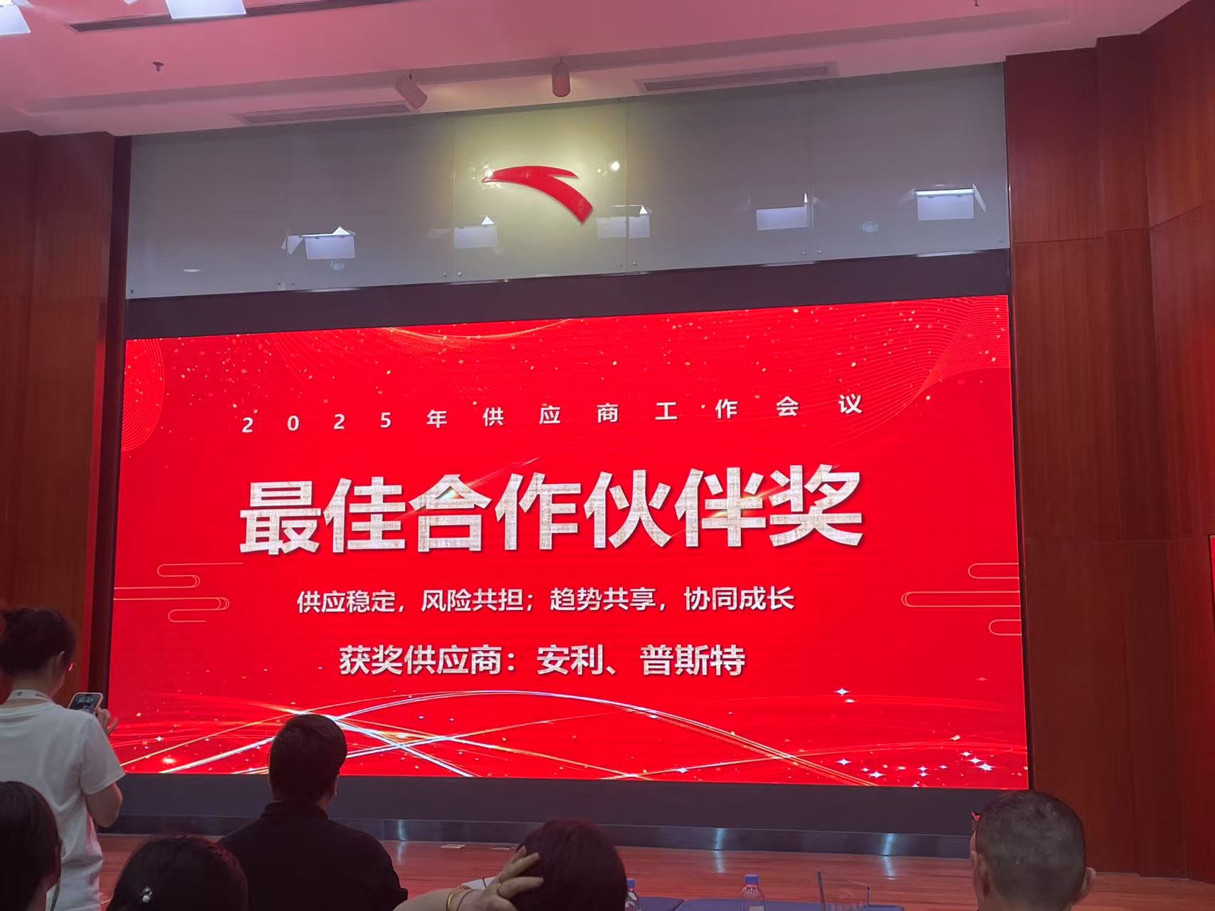 10月16日,安踏鞋生产晋江区召开供应商工作会议,总结表彰2025年度优秀供应商绩效表现。安利股份(300218.SZ)与普斯特两家公司荣获“最佳合作伙伴奖”,安利股份凭借出色的综合实力成为革料、薄膜类别中唯一获此荣誉的供应商,是安踏园区对安利股份在“供应稳定、风险共担、趋势共享、协同成长”四个方面优异表现的充分肯定。安利股份副总经理胡东卫出席会议并领奖。