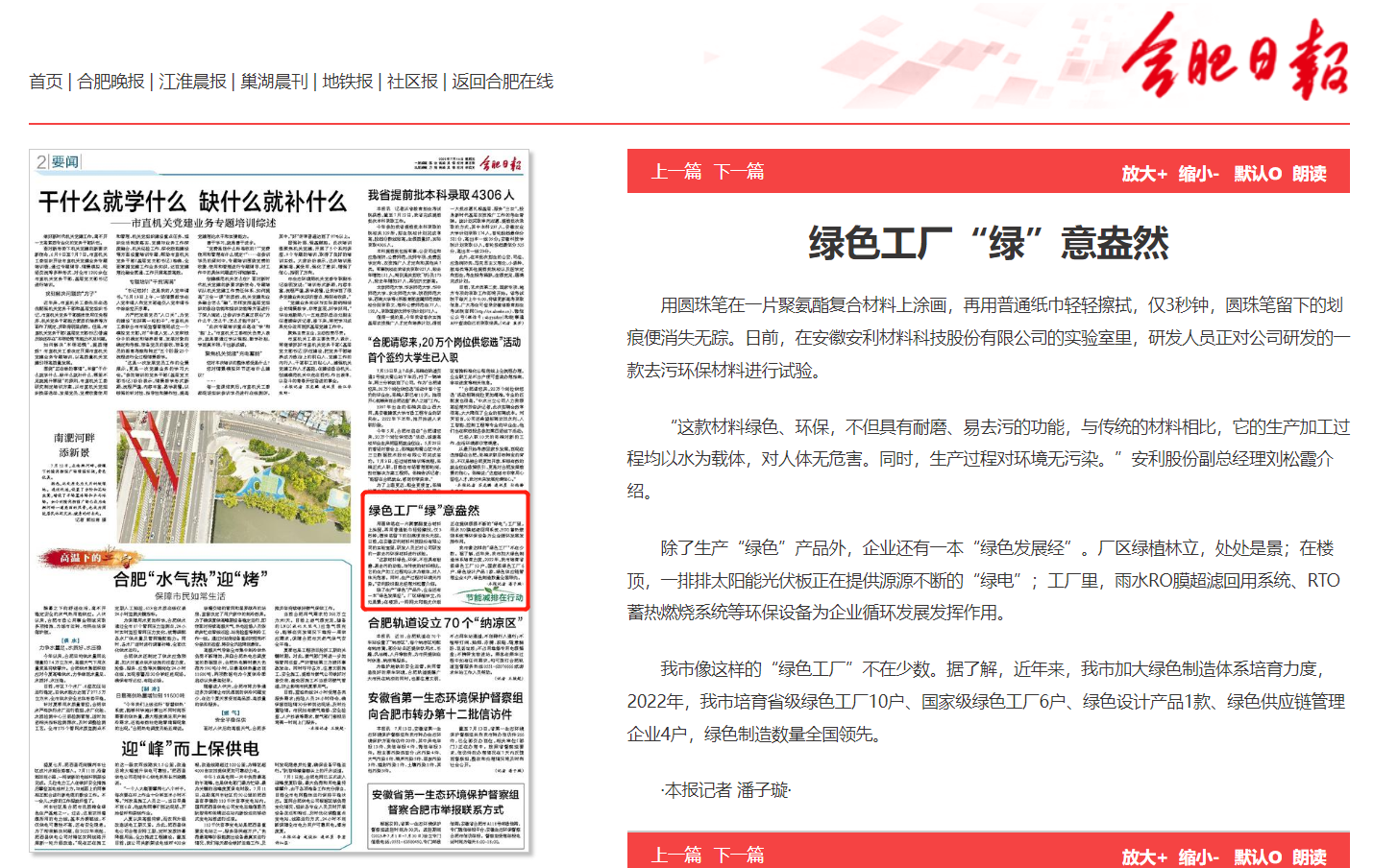 【合肥日报】绿色工厂“绿”意盎然