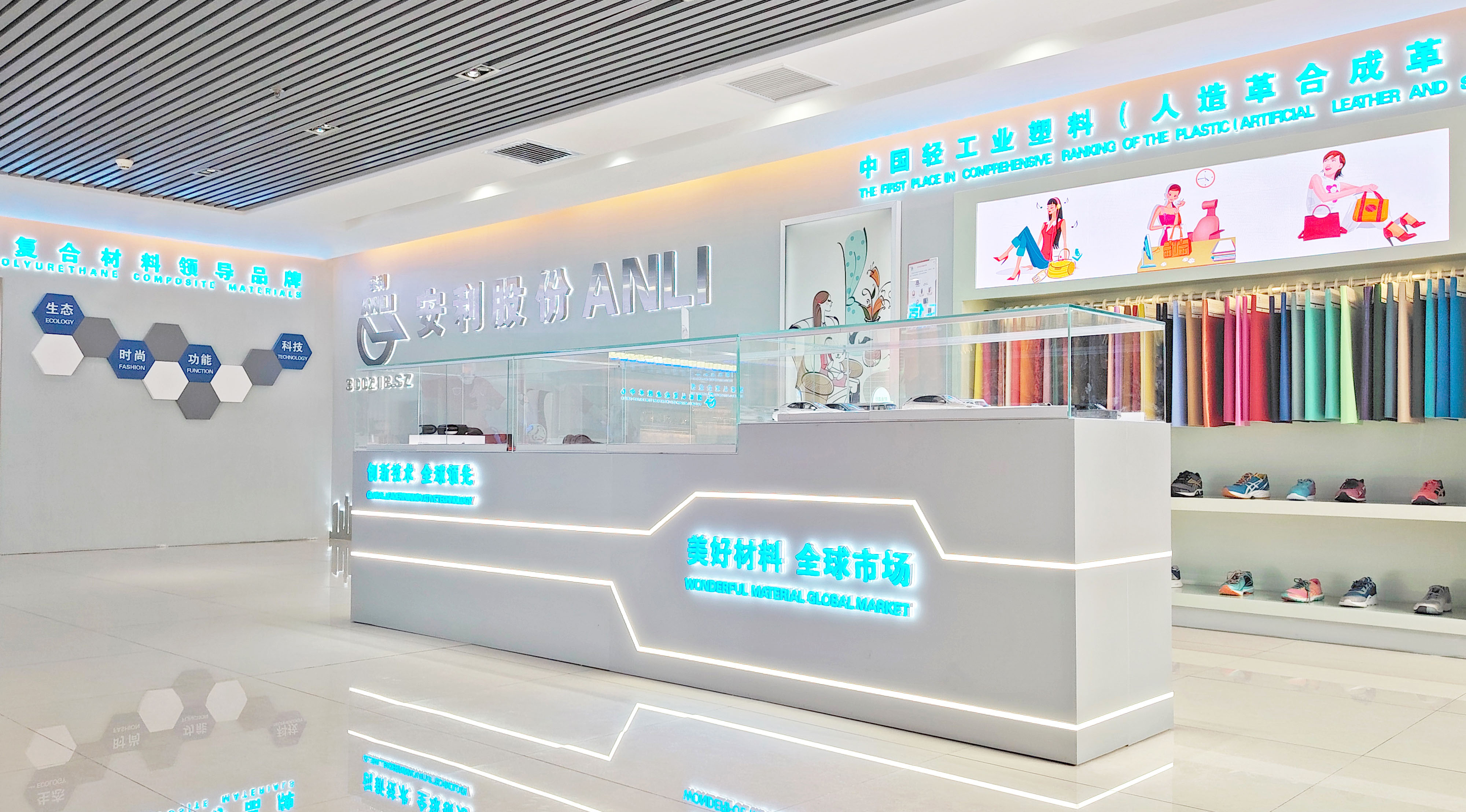 公司主营产品生态功能性聚氨酯复合材料,具有颜值美丽、时尚流行、质感优良、功能卓越、生态环保等特点,是时尚、耐用、环保和舒适的高品质美好材料。